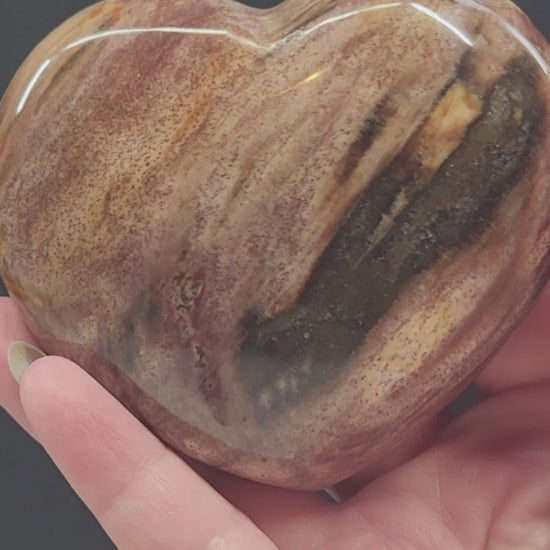 This petrified wood heart from Madagascar is puffy and stout. It brings strength and an earthy vibe to any room.