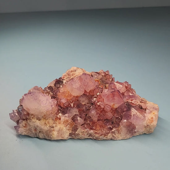 Also called fairy quartz, spirit quartz is characterized by large druse-like points growing perpendicular to a much larger central crystal, visually similar to a pineapple. Amethyst is a variety of quartz crystal. Iron molecules have bonded in the crystal lattice and, with natural irradiation, create the purple colour. Amethyst often forms in conjunction with other members of the quartz family, like smoky and clear quartz.